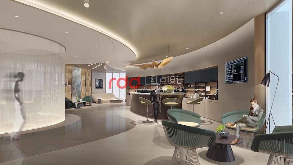乘著徐徐而上的電梯來到九層,接待吧臺與整體空間講究對稱平衡,通過巧妙的吧臺構成形式、空間吊燈的位置,呈現靈動的立面關系,有效緩解空間的呆板。放眼望去,企業的發展歷程及榮譽的光輝背景盡收眼底,木飾面與白墻的過道簡單明了。