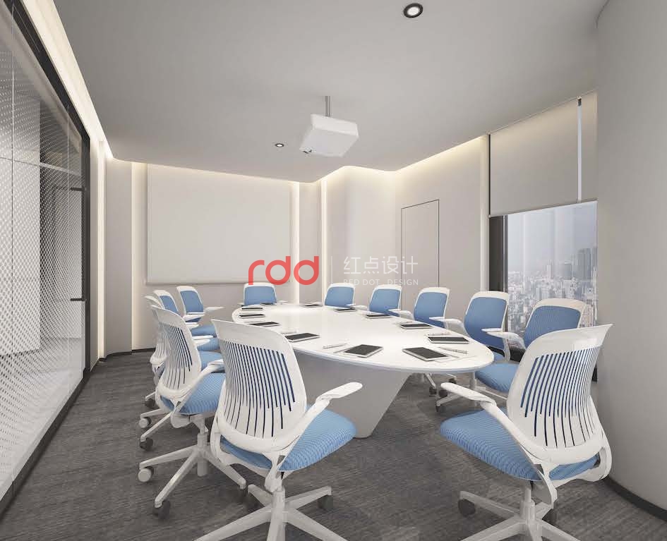 整個辦公空間以前廳的弧形背景墻一直延伸到室內,開放辦公區弧形的辦公桌,加上弧形的LED燈,加之橢圓形的頭腦風暴室作為點金之筆,總體來看,毫無違和感。