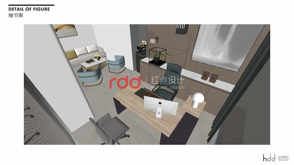 總經理室及辦公區域,設計師巧妙地運用柜子的設計,使柜子兼具裝飾和儲存的功能,配合家具的搭配,讓整個空間看起來既沉穩大方,也不失時尚。