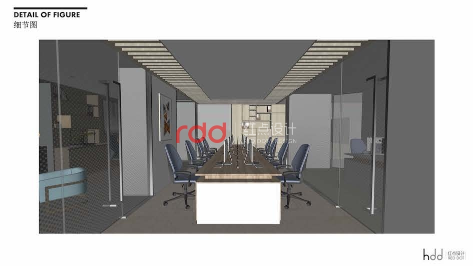 在平面設計上,采用直線型的設計手法,角落位置以柜式處理為主,大大的提高了空間的利用率;同時通過動區與靜區的空間劃分,把辦公跟會議及人流動線大的衛生間區分開來,降低了空間的噪音干擾。