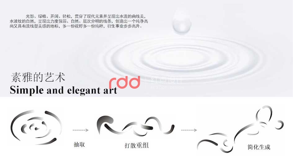 設(shè)計在現(xiàn)代社會中更多的開始趨向于設(shè)計一種生活方式,設(shè)計一種能讓居住者“觸摸“到的空間感受,同時強(qiáng)調(diào)以人為本,創(chuàng)造一個感性、生動的精神氛圍。因此,本案設(shè)計師在現(xiàn)代簡約風(fēng)格的基礎(chǔ)上融入少量Art-deco的設(shè)計風(fēng)格。以水波紋為基礎(chǔ)元素經(jīng)過拆分、打散,最后重組成新的元素。這一新的靈感來源介于古典與現(xiàn)代之間,具有現(xiàn)代主義的簡約而不簡單,又有古典主義的精致而不繁瑣。