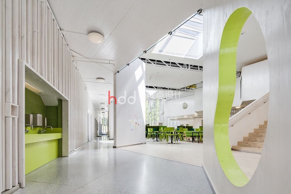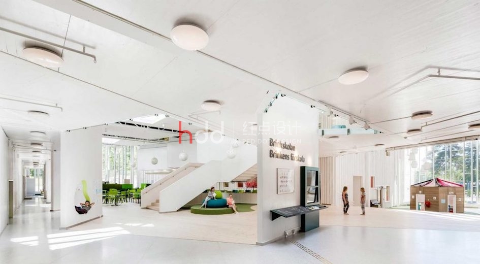 Brinkskolan 學校的營造計劃,由知名的建筑團隊 LINK Arkitektur 操刀;LINK Arkitektur 以斯堪地那維亞文化為設計核心,以挪威、瑞典與丹麥為據點,試圖藉由一棟棟建筑打造,將北歐對「永續經營」的哲學融入空間。在 Brinkskolan 校園中,建筑團隊將娛樂、創意、自發性和永續性作為主要設計理念,并利用校區有坡度的地域特色納入考慮,替學子們打造出各種開放、通風的空間。跳脫傳統一版一眼的學校格局,在寬廣的主體空間中另外延伸數個小空間,加入如小木屋、游戲間的色調與元素,并在屋頂開設數個天窗,讓孩子們能在環境里自在與空間互動。聽起來紛雜的設計規劃,運用小細節調和,不僅引導學生對空間的運用與想象,也能讓學生在學習環境里逐漸耳濡目染,培養對美感與設計的敏感度。