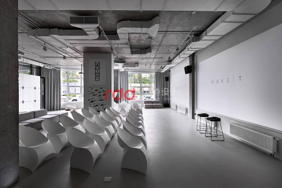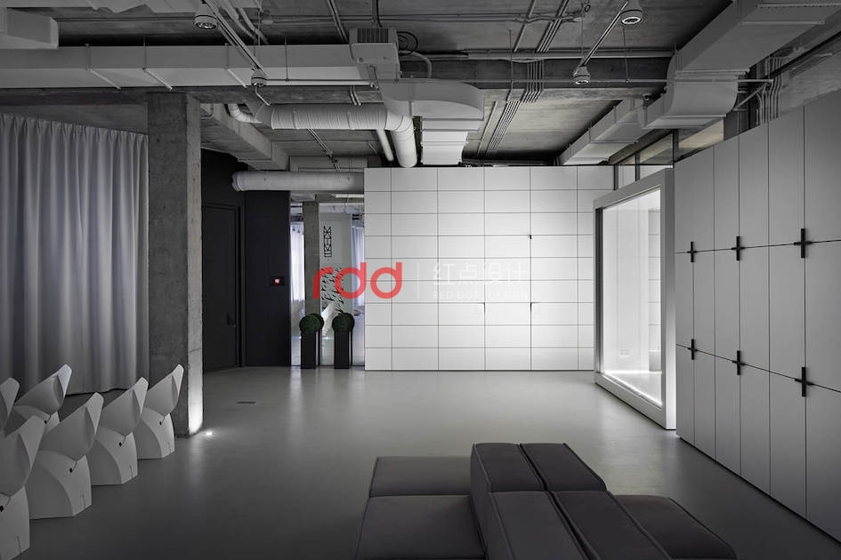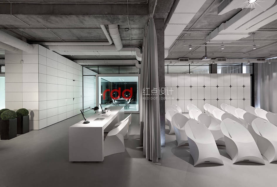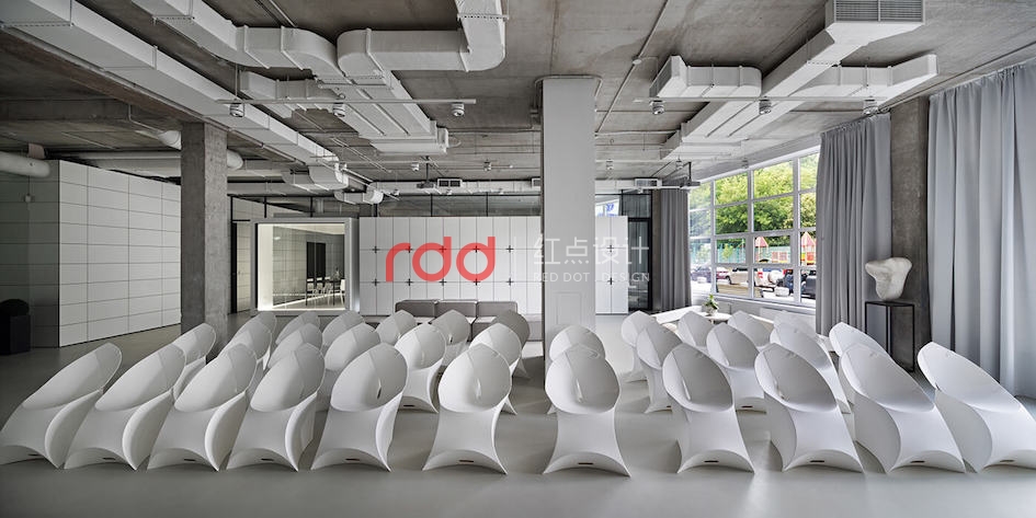 本例辦公室設(shè)計(jì)主要以空白紙張為概念。一張空白紙張,它可以轉(zhuǎn)化為一切:一幅畫(huà),一本好書(shū)的頁(yè)面,或成為一個(gè)全新的東西。辦公室設(shè)計(jì)的中心是白色的立方會(huì)議室——兩個(gè)區(qū)域之間的通道。有一個(gè)封閉的外殼,以提供隔音。工作場(chǎng)所被區(qū)分為兩個(gè)白色的大島嶼,布局格外舒適。