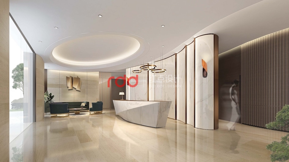 步入大堂,層層疊疊的弧形天花猶如海浪,條條整齊的仿木紋鋁格柵如竹子。白色弧形大理石背景墻及異型大理石前臺(tái)仿佛帆船一樣在破浪前行。“長風(fēng)破浪會(huì)有時(shí),直掛云帆濟(jì)滄海。”之感油然而生。